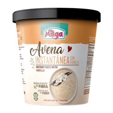 La avena con vainilla instantánea Maga es un producto de desayuno listo para consumir, que se cocina rápidamente en pocos minutos. Es una alternativa rápida y fácil para disfrutar de un desayuno caliente y nutritivo. Se caracteriza por su textura suave y su sabor agradable, ideal para niños y adultos.