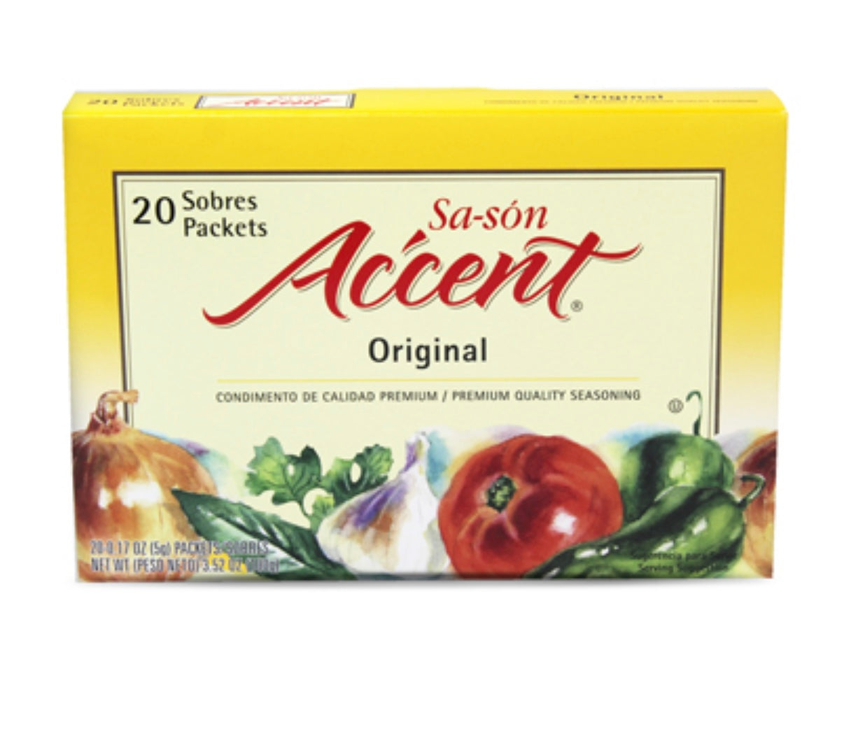 El "Sa-Són Accent Original" es una mezcla de hierbas y especias, principalmente que se utiliza como condimento para dar sabor y color a la comida. Bohío es una marca conocida por estos productos.