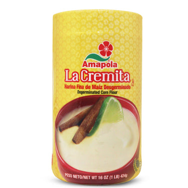 La crema de maíz Amapola "La Cremita" es un producto de consumo popular en Puerto Rico, específicamente una mezcla de harina de maíz y coco, generalmente en forma de polvo o cereal, que se prepara con leche y se disfruta como postre o desayuno. Es conocida por su sabor dulce y cremoso, y suele ser una opción sencilla y rápida para un refrigerio o alimento nutritivo.