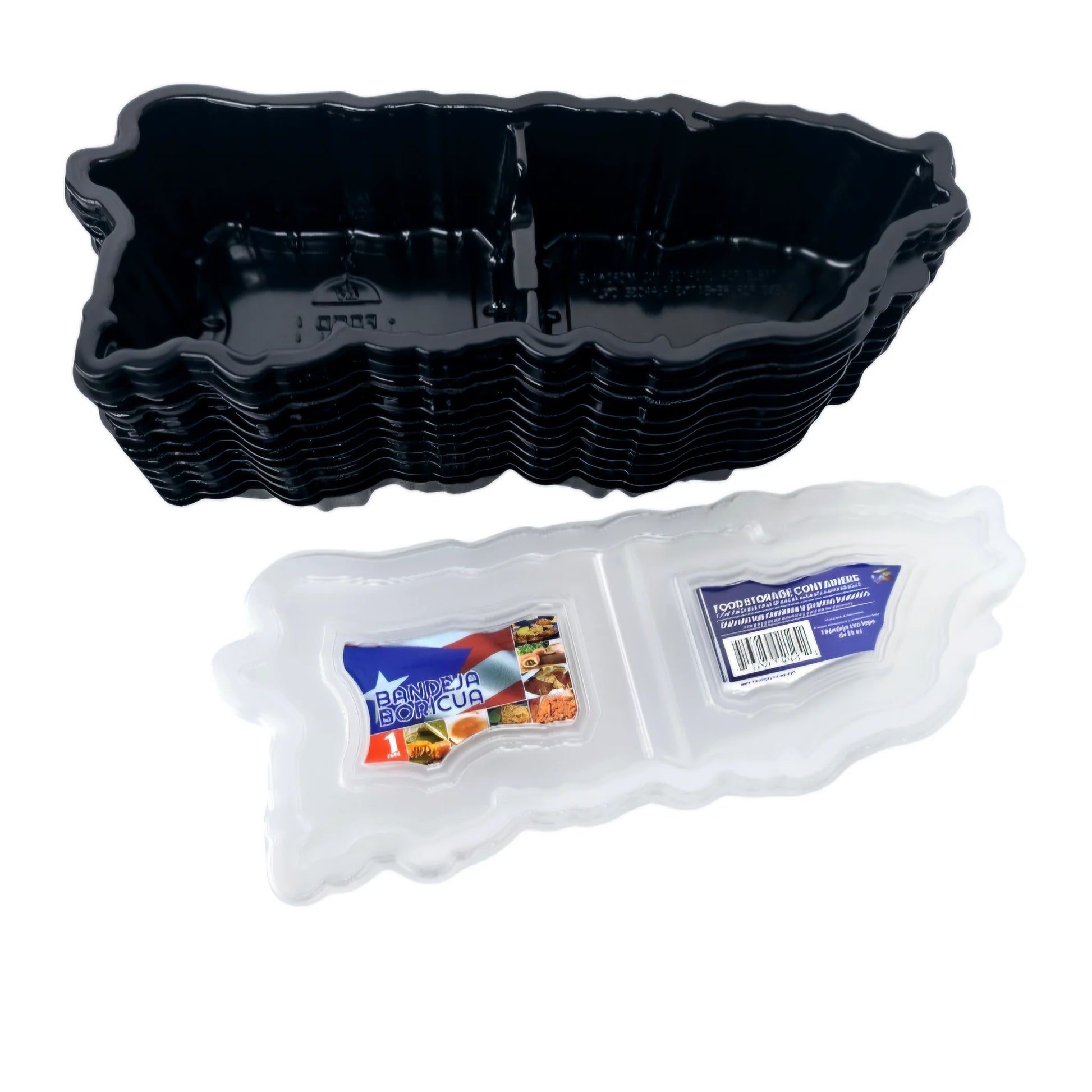 Paquete de 10 moldes en forma de Puerto Rico con su tapa, ideal para guardar dulces o crear postres o hasta servir platos de comida así como arroz con gandulees pernil y ensalada de papa,