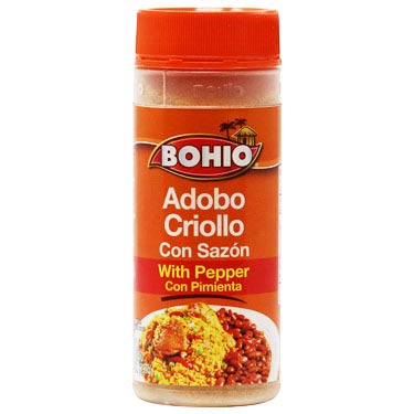 El Adobo Criollo Bohío con Sazón y Pimienta, la combinación perfecta de ajo, orégano y condimentos, es todo lo que necesitas para que la carne, el pollo y el pescado tengan un sabor exquisito. Solo agítalo antes de cocinar. Con solo agitarlo, es suficiente.