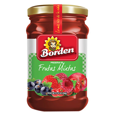 La jalea de Frutas Bordens es una preparación dulce y gelatinosa, similar a una mermelada, que se obtiene al cocinar frutas con azúcar y otros ingredientes hasta que alcanza una consistencia espesa y translúcida. Se caracteriza por ser un producto de la marca Borden, conocida por sus productos alimenticios.