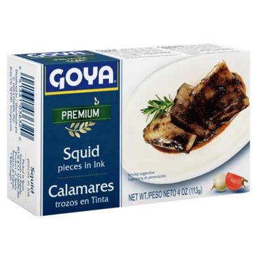 Los "Calamares en su tinta Goya" se refiere a una preparación culinaria que utiliza pulpo enlatado de la marca Goya, combinado en su tinta natural y otros ingredientes para crear un plato sabroso. Es una forma rápida y fácil de disfrutar de pulpo en una comida, ya que el pulpo enlatado está precocido y listo para usar.