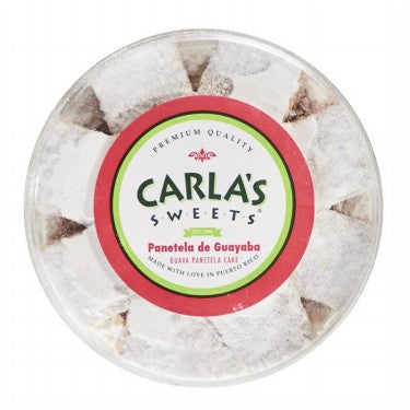 Las panetelas de guayaba de Carla's Sweets son un pastel de mantequilla 100% relleno de guayaba, cortado en cuadrados y generalmente cubierto con azúcar en polvo. Son un producto popular hecho en Puerto Rico, conocido por su sabor a mantequilla y la dulce guayaba en su interior.