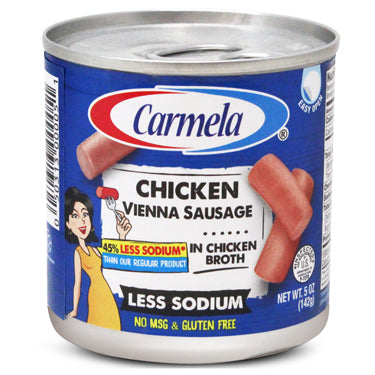 La salchicha Carmela de pollo reducido en sal es una salchicha de pollo enlatada de la marca Carmela que contiene menos sal que la versión original. Es un producto popular en Puerto Rico y es una opción para quienes buscan reducir su consumo de sodio.