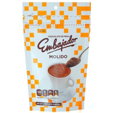 El Chocolate Embajador Molido es un producto tradicional dominicano utilizado principalmente para preparar chocolate caliente. Este chocolate suele ser una mezcla de cacao en polvo, azúcar y, en algunos casos, especias como la canela o la vainilla para darle un sabor más característico.