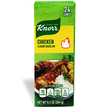 Caldo de Pollo Knorr. Los cubitos Knorr son la manera más rápida de darle a todas tus recetas el auténtico sabor latino. Knorr es tu mejor aliado para preparar deliciosos platillos, sopas, arroces, verduras, pastas y mucho más. Cubitos Knorr de Pollo, Res, Jamón, Criollo con Achiote y Jamón con Calabaza. Cubitos de Jamón Knorr.