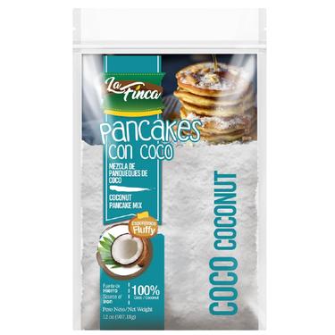 LA FINCA PANCAKES COCO son una mezcla de panqueques de coco, fácil de preparar, con un sabor dulce a coco y una textura esponjosa, ideal para el desayuno o como un dulce para cualquier momento del día. Son una opción de La Finca Natural, una marca que también ofrece otros productos como panqueques de cocoa, avena y maíz.