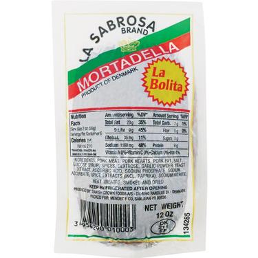 La Mortadela "La Sabrosa" es una mortadela de cerdo finamente molida, originaria de Bolonia, Italia, que se caracteriza por su textura suave y cremosa. Es conocida por su sabor rico y sabroso, con toques especiados y, en algunas variantes, con pistachos o granos de pimienta. Se puede disfrutar sola, como parte de un aperitivo, en sándwiches o como ingrediente en otras preparaciones.