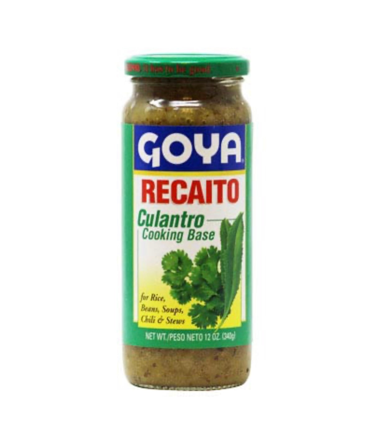 El Recaito Goya es una base de cocina verde, un condimento esencial en la cocina puertorriqueña, especialmente popular en platos como arroz, frijoles, sopas y guisos. Está hecho principalmente de culantro, cebolla, ajo y pimientos verdes, salteados en aceite. Goya lo comercializa como una forma rápida y fácil de añadir sabor auténtico latino a tus comidas