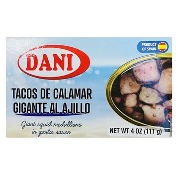 Los tacos de calamar al ajillo es un producto de conserva delicioso y fácil de usar en la cocina. Están hechos con calamar fresco y se conserva al ajillol. La vida del Grupo Dani comienza como un negocio familiar que a través del tiempo ha sabido adaptarse a las tendencias del mercado.