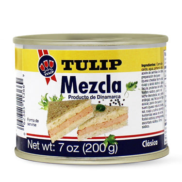 La mezcla para sándwich Tulip es un producto de carne enlatada, generalmente hecha de jamonilla o carne de cerdo, que se mezcla con otros ingredientes para formar una crema untable. Esta crema está diseñada para untar en panes, galletas o usarse como relleno en diversos bocadillos.