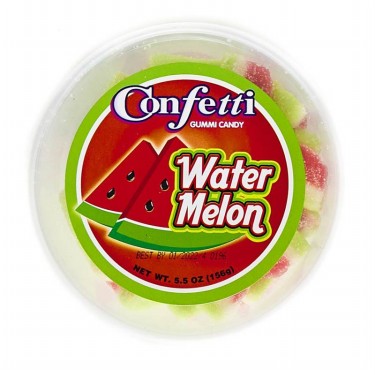 Los Confetti Watermelon son unas golosinas en forma de gominolas que imitan el aspecto y el sabor de una rodaja de sandía. Estas gominolas, con su diseño en forma de sandía, ofrecen una experiencia divertida y refrescante para disfrutar.